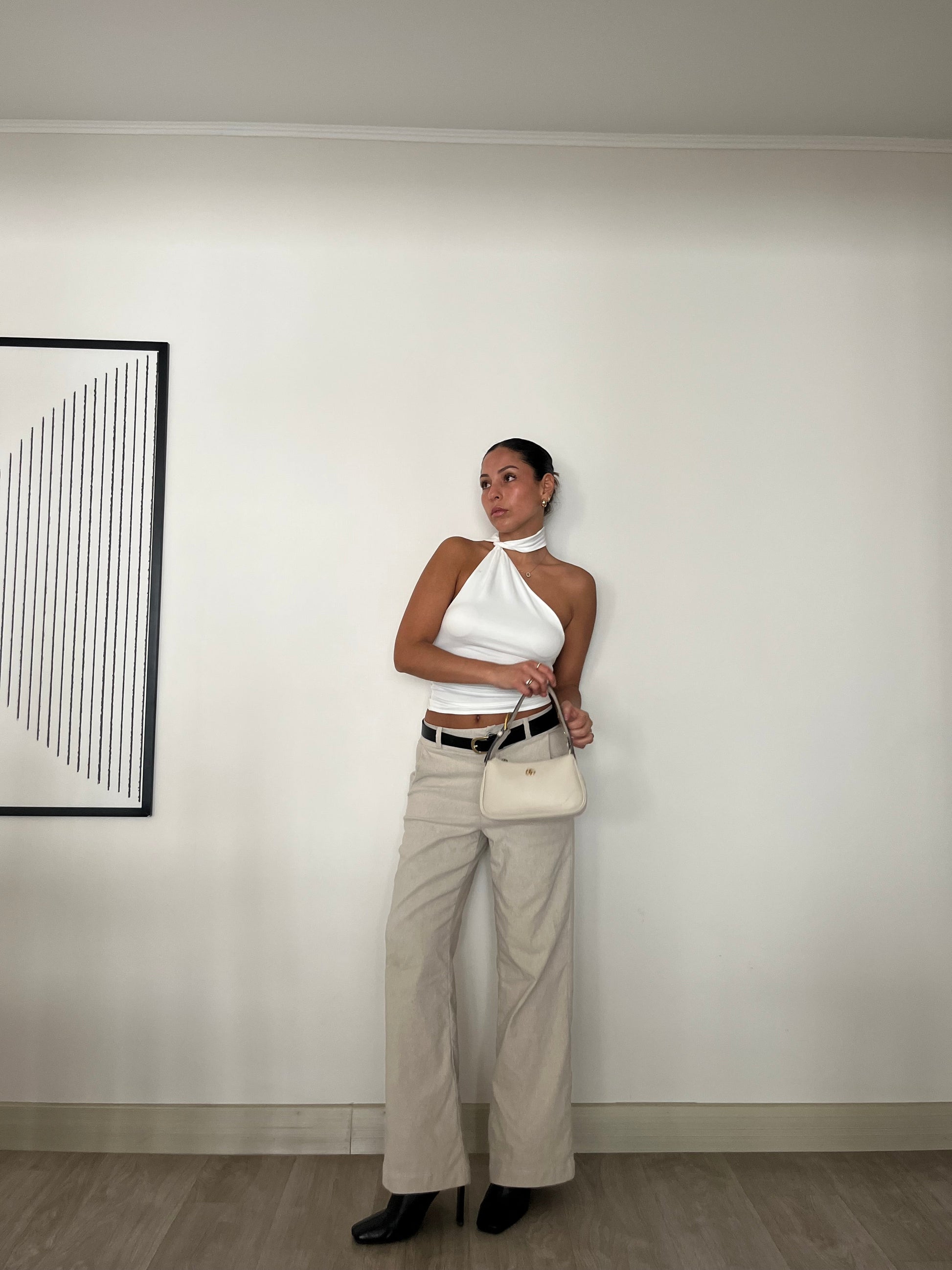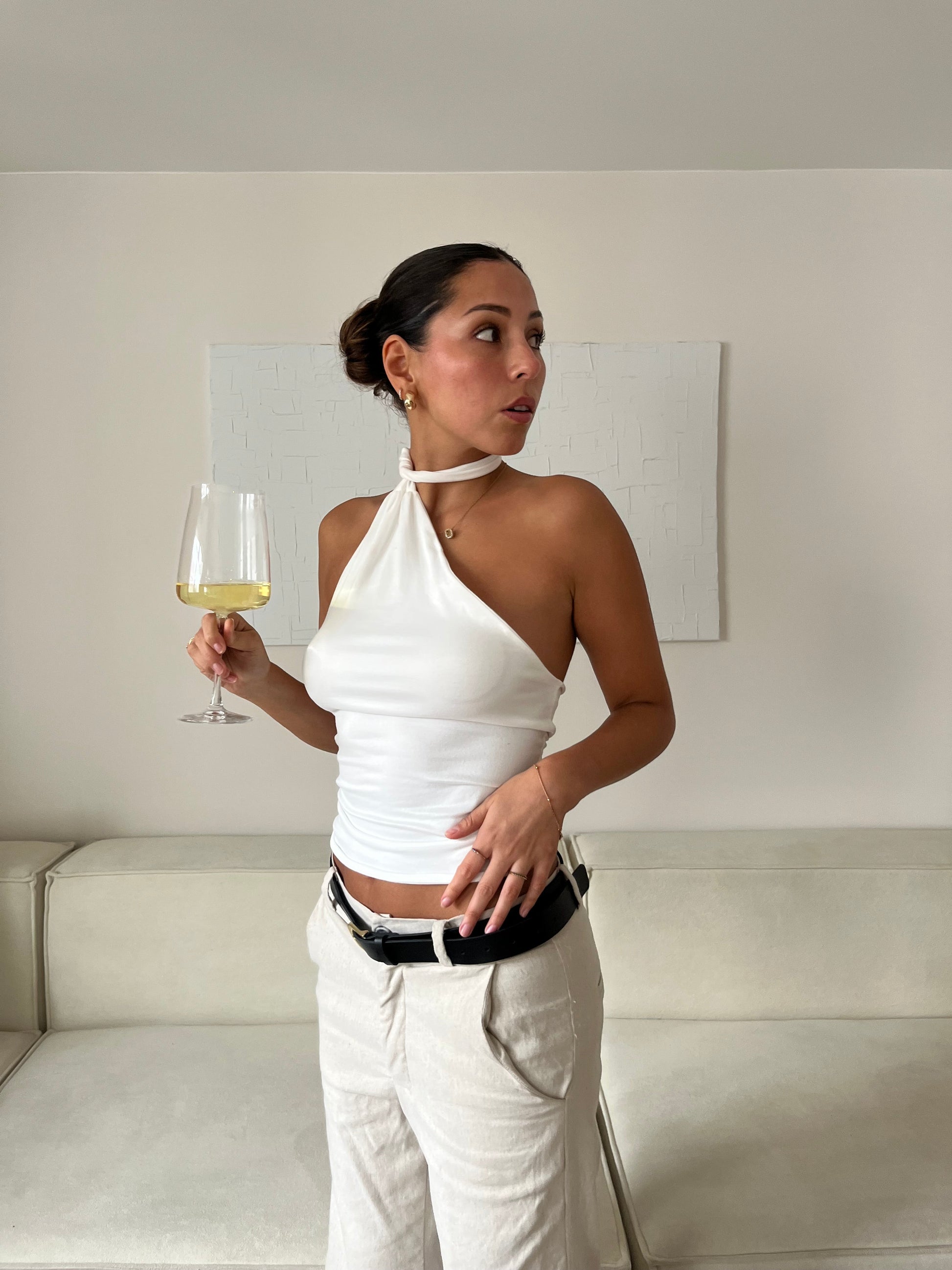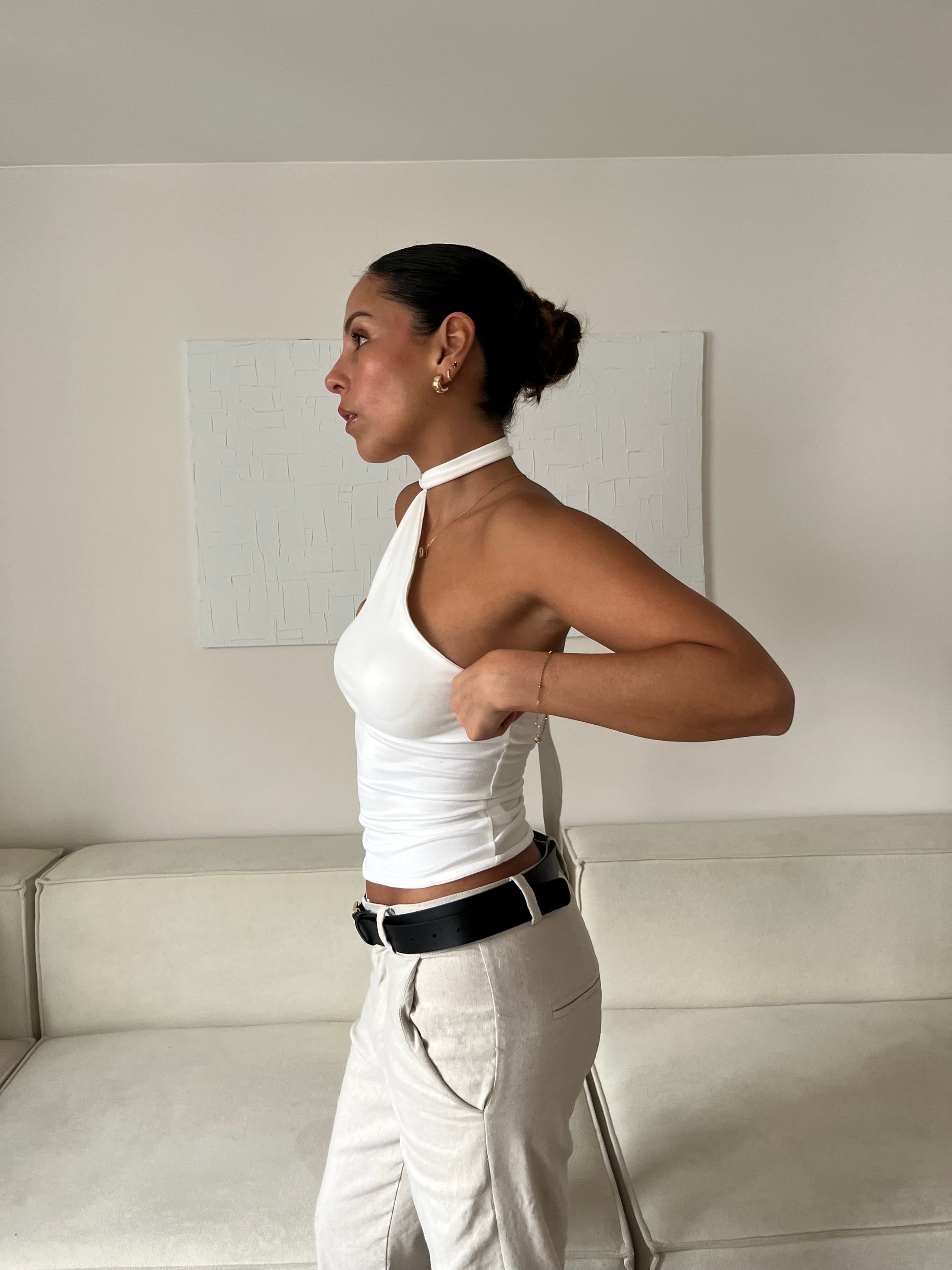 Top estilo halter, con tira para el cuello. Escote recto en la espalda. *La modelo lleva la talla S. Este top cuenta con una tira para un ajuste seguro. El escote recto en la espalda le aporta un toque de sofisticación perfecto para cualquier ocasión. La talla S se muestra en las fotos como referencia.