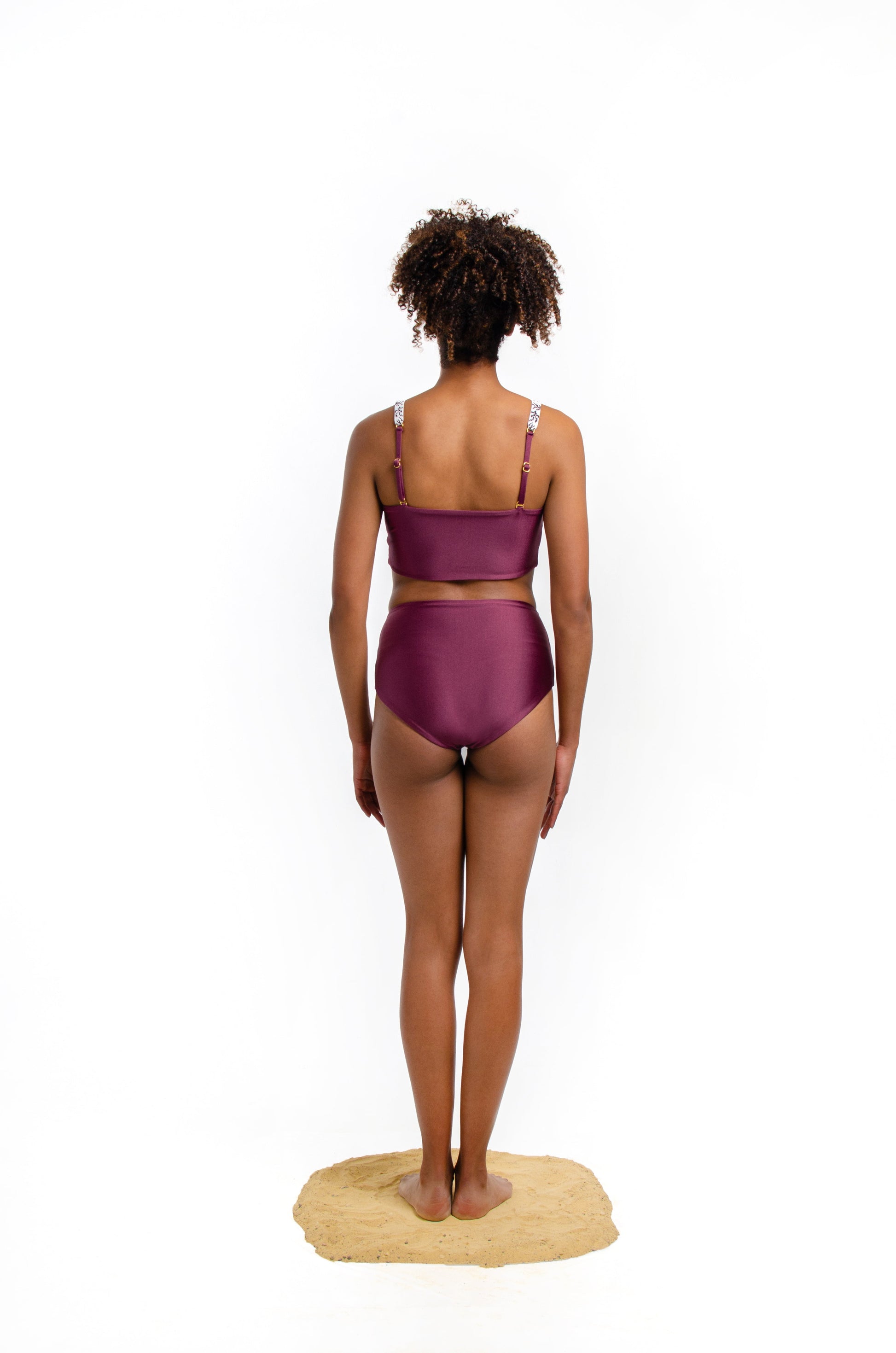 Bustier style top that includes the Coralito beaded straps hand-woven by local artisans in Colombia.