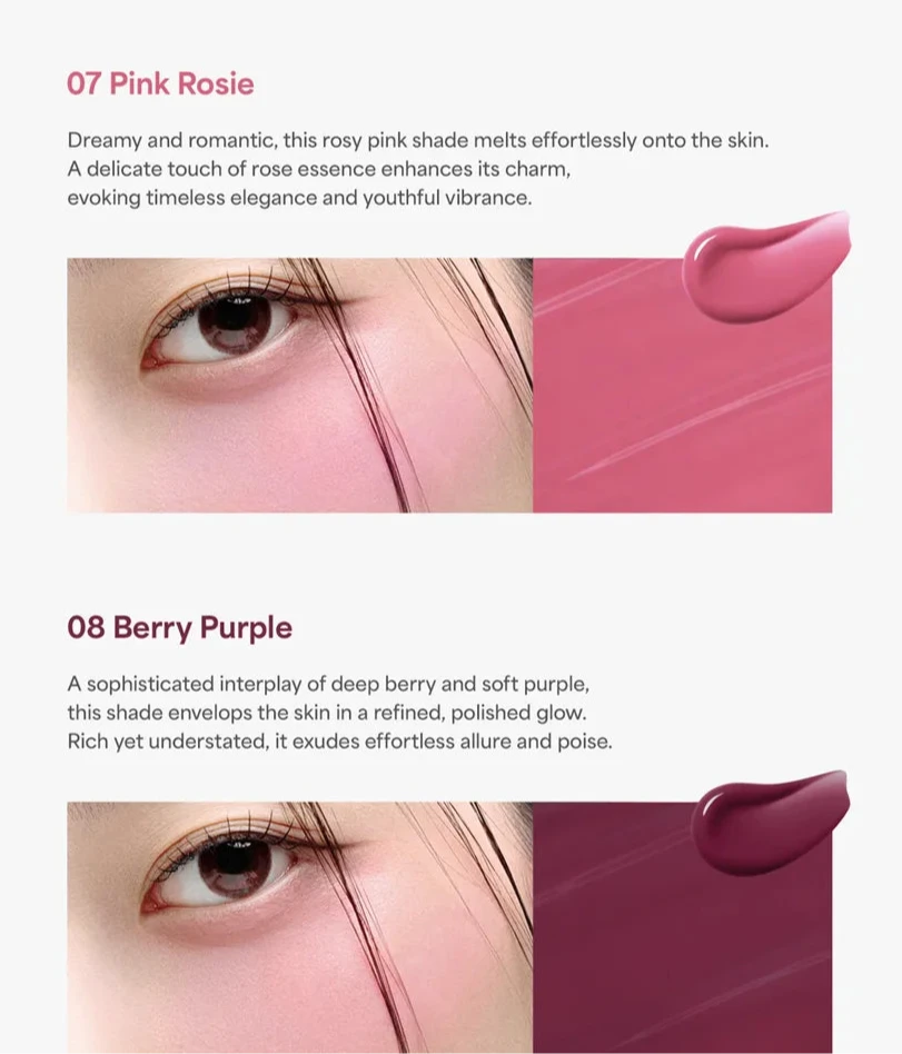 The lightweight, buildable formula melts into the skin with a silky, serum-like texture that leaves behind a dewy, second-skin finish — perfect for dry or dull complexions in need of a glow boost. Designed for everyday wear, the #Pink Rosie shade complements all skin tones with a subtle yet lively pink tint.