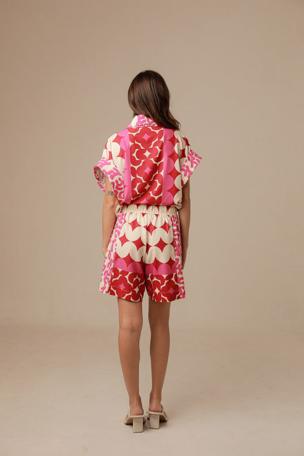 PANTALÓN CORTO FLUIDO DE CINTURA ALTA CON CAMISA DE MANGA CORTA CORTA