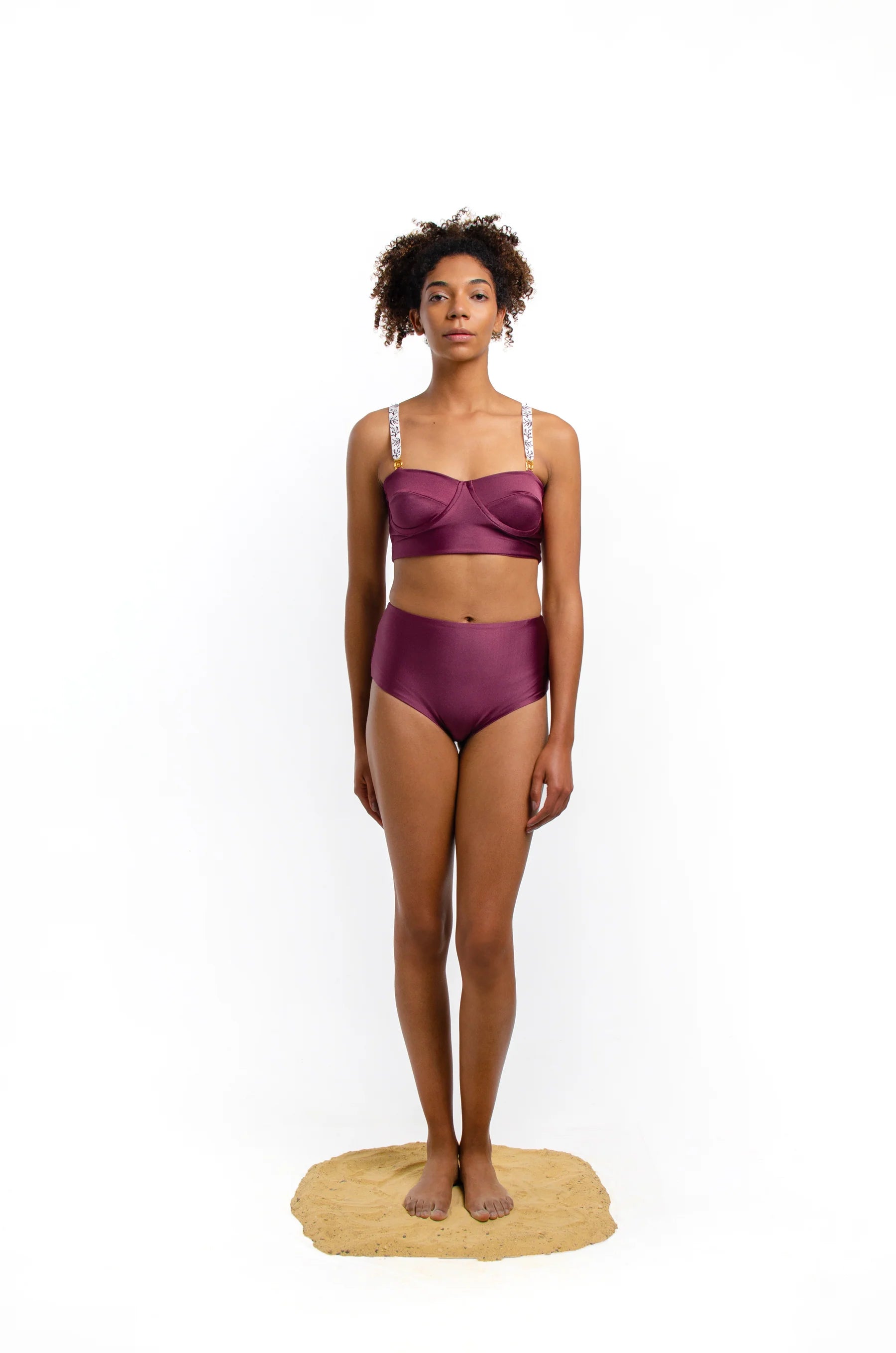 Halter style top tied at the neck. This top includes the Seashell necklace which is adjustable with a bow. The necklace is removable and it was hand-woven by local artisans in Colombia.