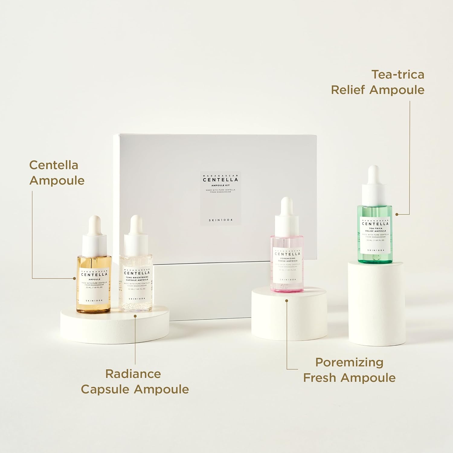 Calm, hydrate, and strengthen your skin with this ampoule set featuring Centella Asiatica extract from Madagascar. These lightweight formulas help soothe irritation, restore the skin barrier, and leave the skin looking healthy, balanced, and radiant.