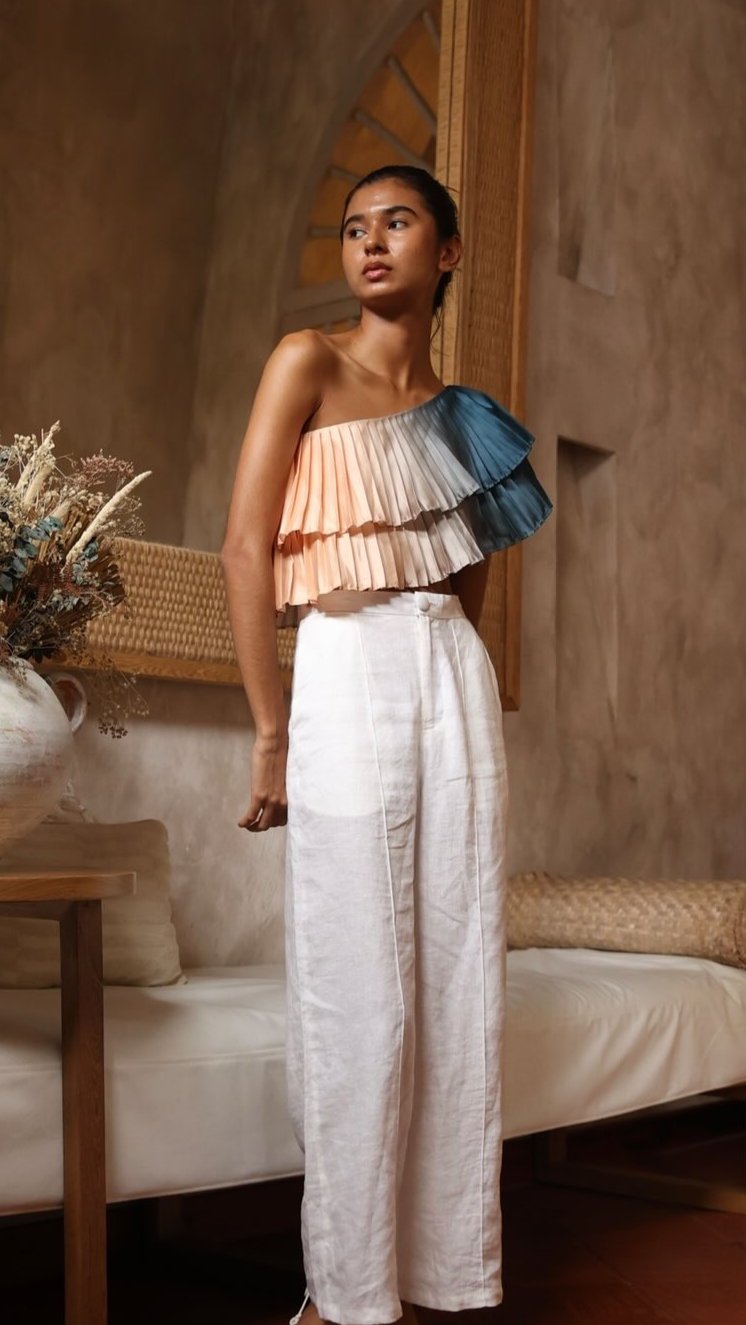Presentamos la blusa Marimba, una incorporación elegante y versátil a tu guardarropa. El diseño de un solo hombro y los detalles plisados ofrecen un toque único, disponible en varios colores para adaptarse a tu estilo personal. Realza tu look con esta blusa moderna y elegante.