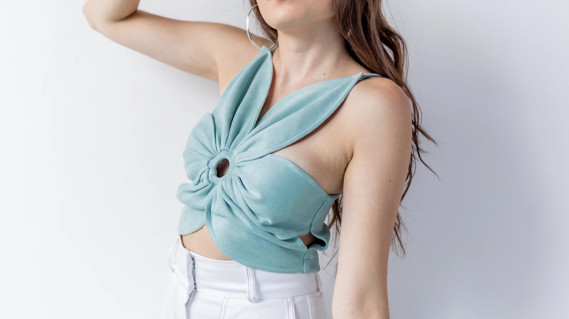 Indulge in the epitome of luxury with our MINT FLOWER CROP TOP. Crafted with exquisite suede, this unique blue top features a stunning flower cut design that is bound to turn heads. Elevate your wardrobe with this exclusive piece that exudes elegance and sophistication.