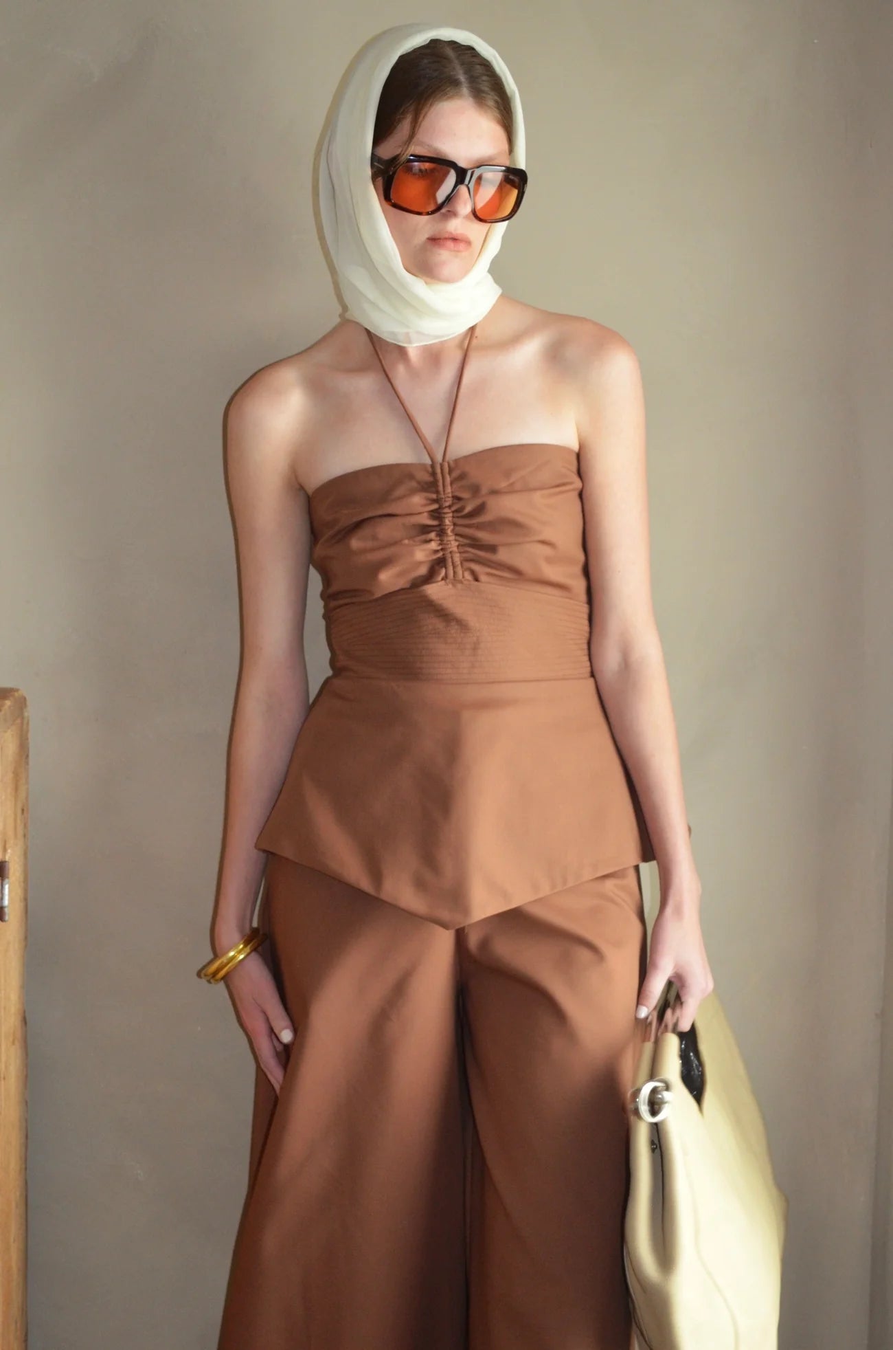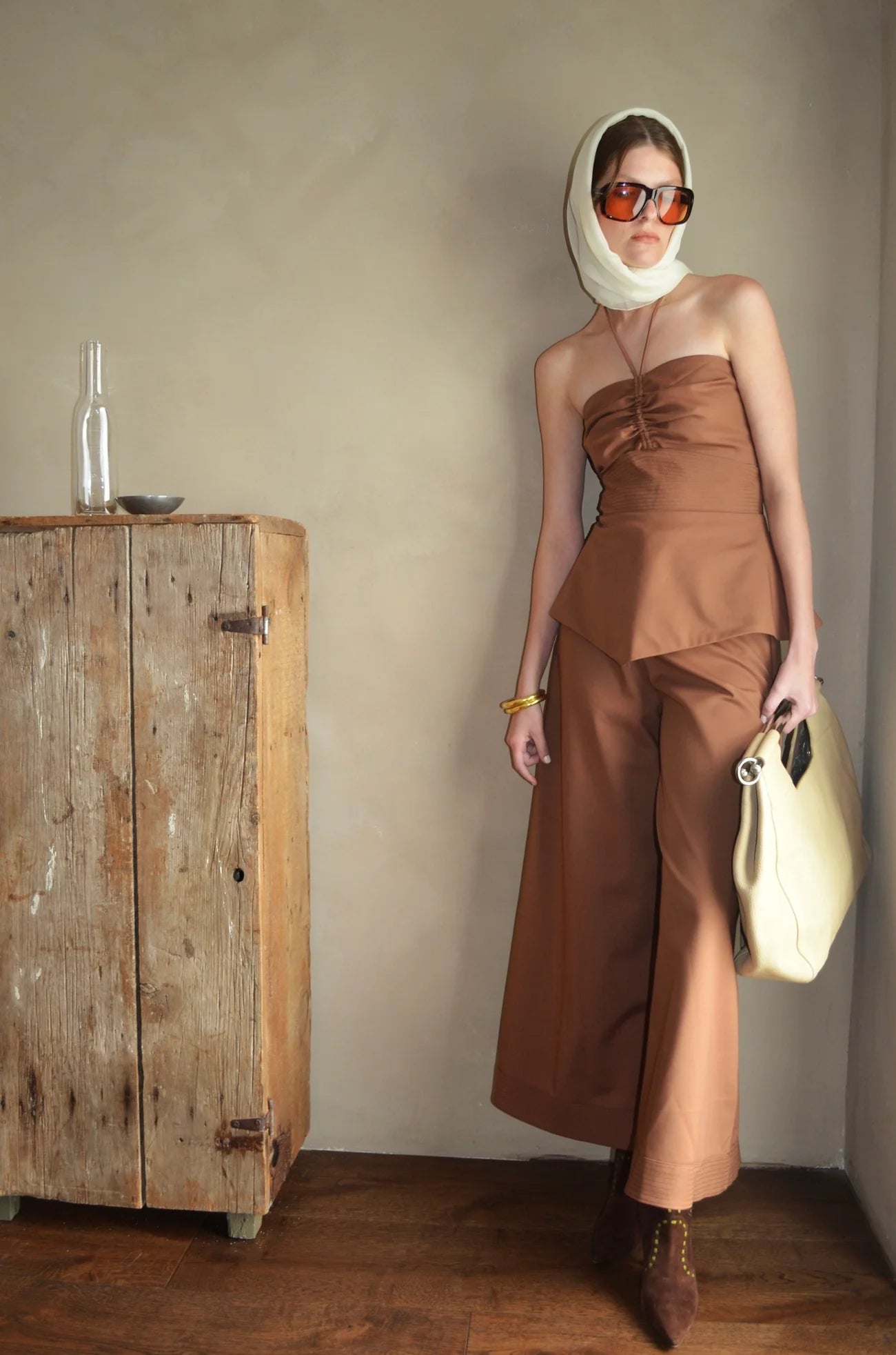 Lightweight blouse with a central topstitch that flatters the silhouette and an asymmetrical cut for a modern, edgy look.