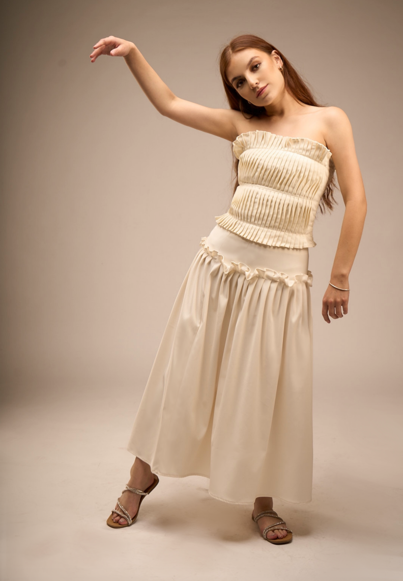 Nuestra falda plisada midi, confeccionada por expertos con tejido crepé ligero, está diseñada para que te sientas cómoda y elegante. La falda larga con pliegues añade un toque de feminidad, mientras que el diseño plisado favorece tu figura. Perfecta para cualquier ocasión, desde el trabajo hasta una salida nocturna.
