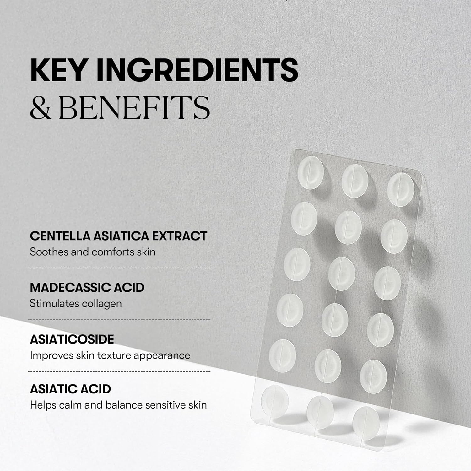 These clear spot patches are infused with Centella Asiatica extract, known for its soothing and healing properties. Designed to target blemishes and acne spots, the patches help reduce inflammation, protect the skin from bacteria, and promote faster healing. The transparent, ultra-thin design makes them discreet and comfortable to wear throughout the day or night. Each pack contains 4 patches, perfect for treating individual spots effectively.