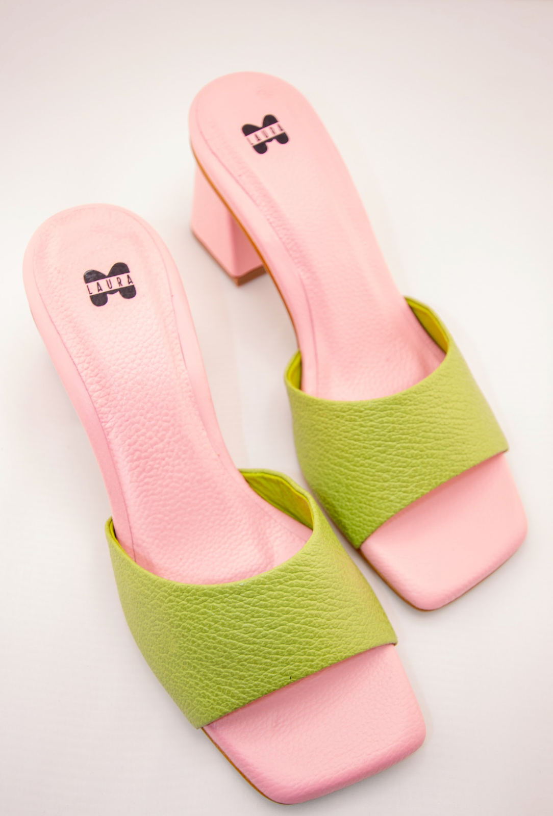 Elevate your style with these elegant pink and green little sandal heels, designed to add a vibrant touch to any outfit. Crafted with cushioned soles, they ensure lasting comfort while making a bold, colorful statement. Perfect for those who appreciate both sophistication and playful charm in their footwear.