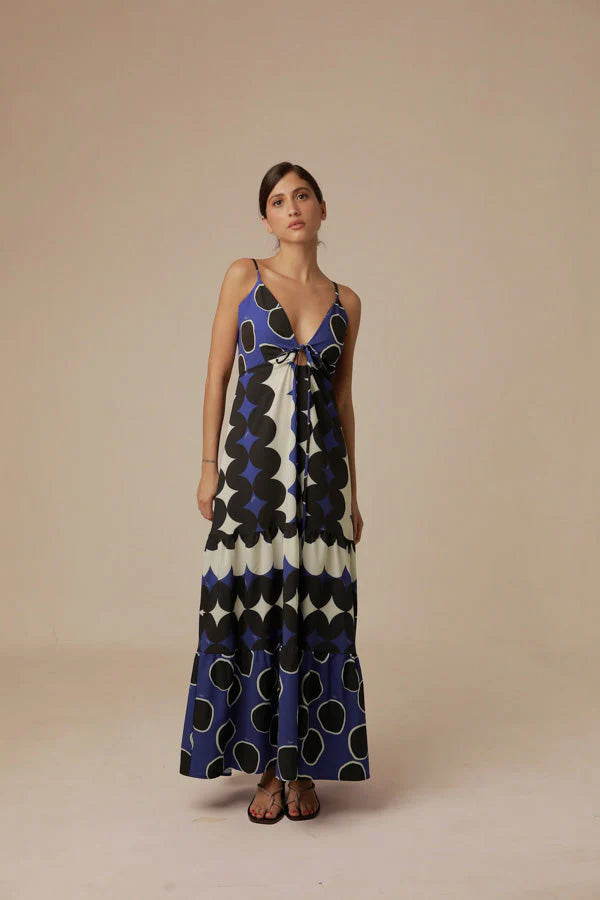The Scarlet Dress is a stunning addition to your wardrobe. Crafted from soft, luxurious cotton, this beautiful blue dress features playful dot prints that add a touch of elegance and charm. Perfect for both day and evening wear, it will make you feel confident and sophisticated, effortlessly.