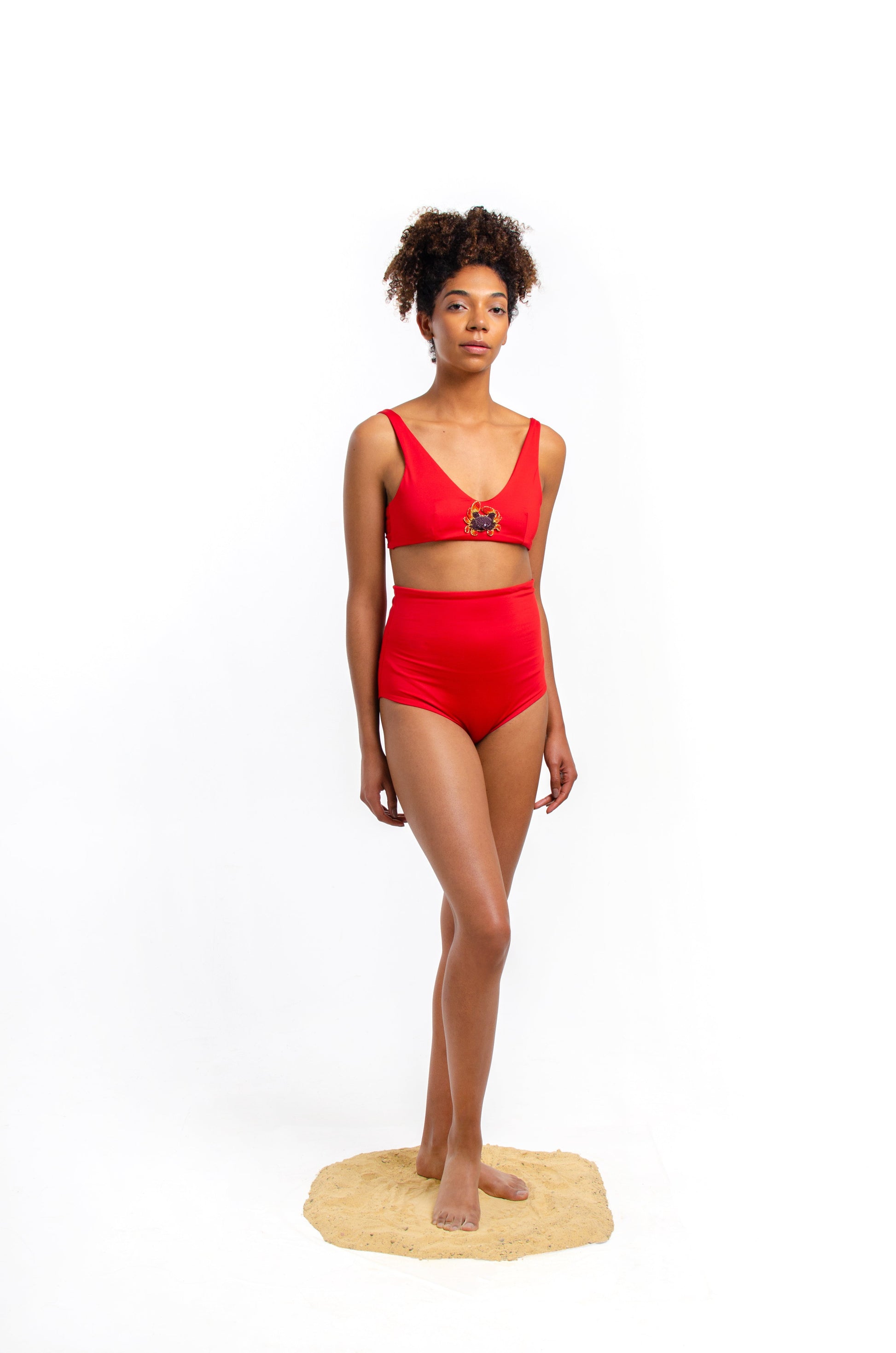 Scoop neckline top with Crab beaded brooch handcrafted by local artisans in Colombia.