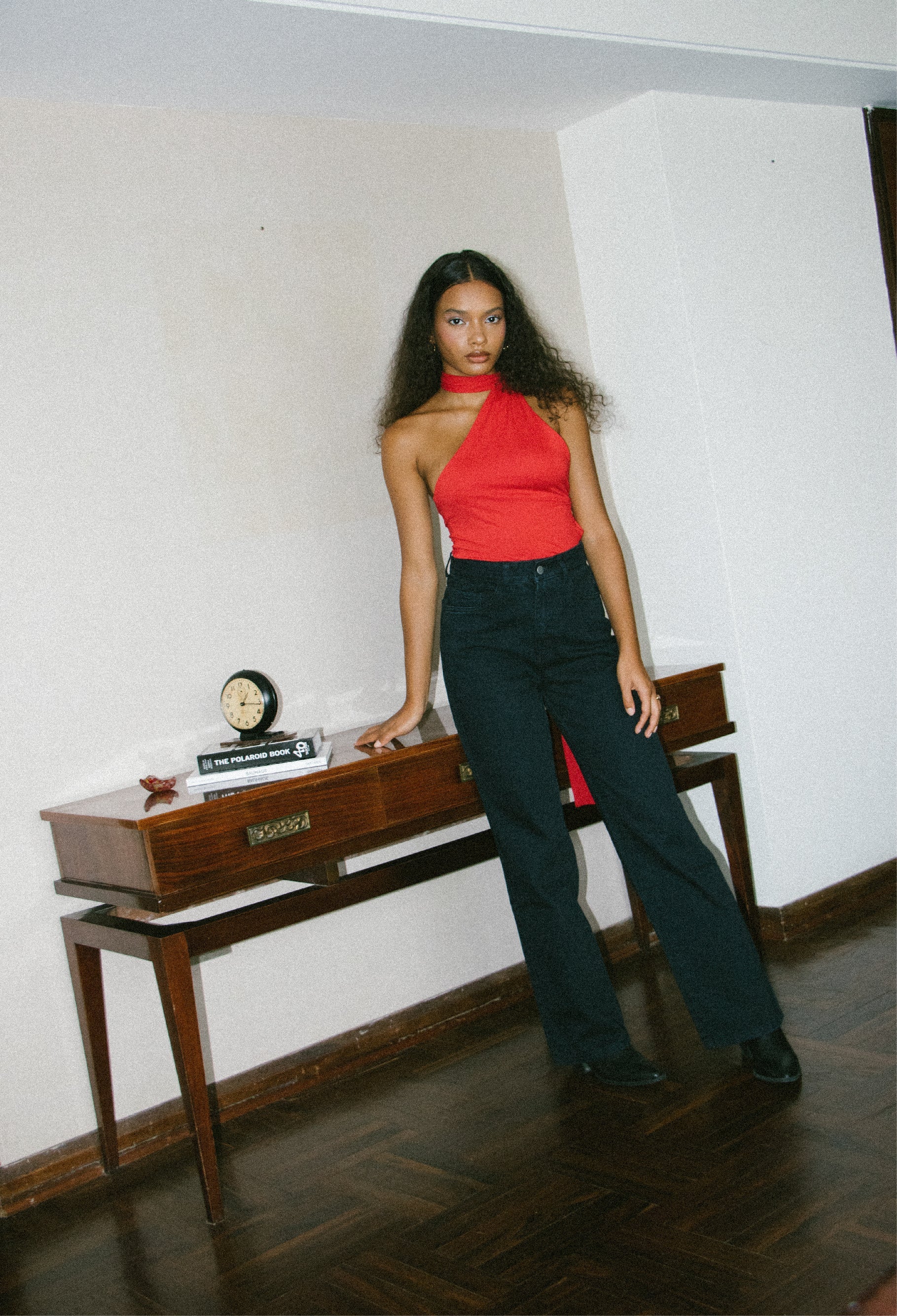 Vestido con tirantes ajustables en cuello, escote y cintura recta. Esta prenda calza la talla Small según el modelo. Sus tirantes ajustables y su corte entallado lo convierten en la opción perfecta para la mujer moderna que busca un ajuste favorecedor.