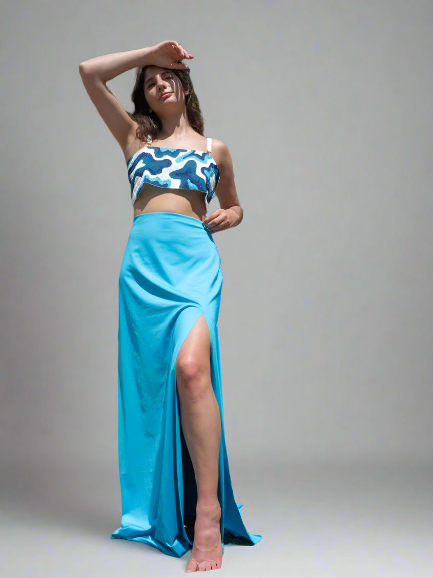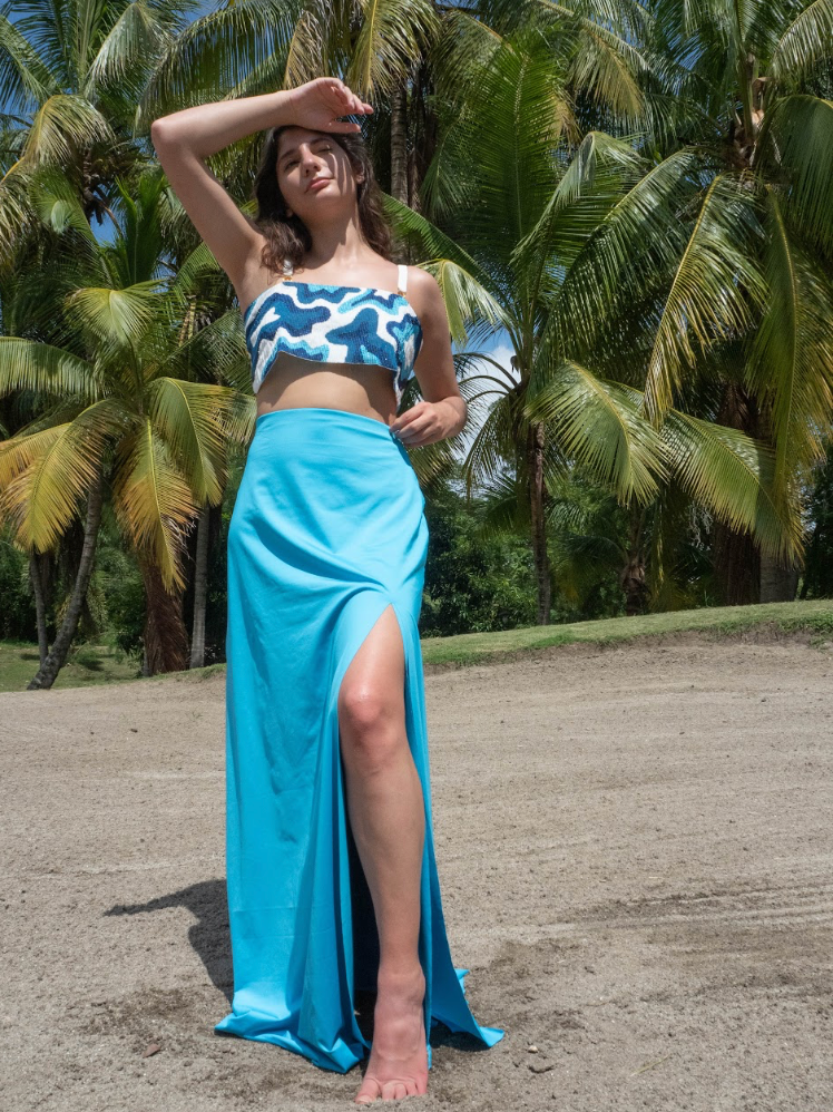 The Azul Skirt is expertly crafted with a unique blend of Lycra material, providing you with exceptional comfort and stretch. This makes it perfect for any occasion, giving you the ability to effortlessly style it up or down. Upgrade your wardrobe with this versatile and comfortable skirt.