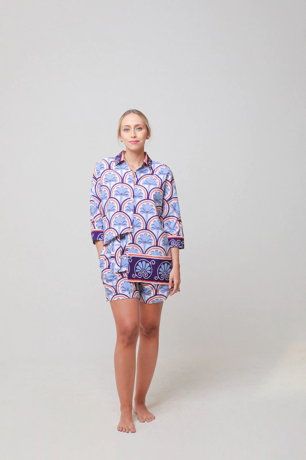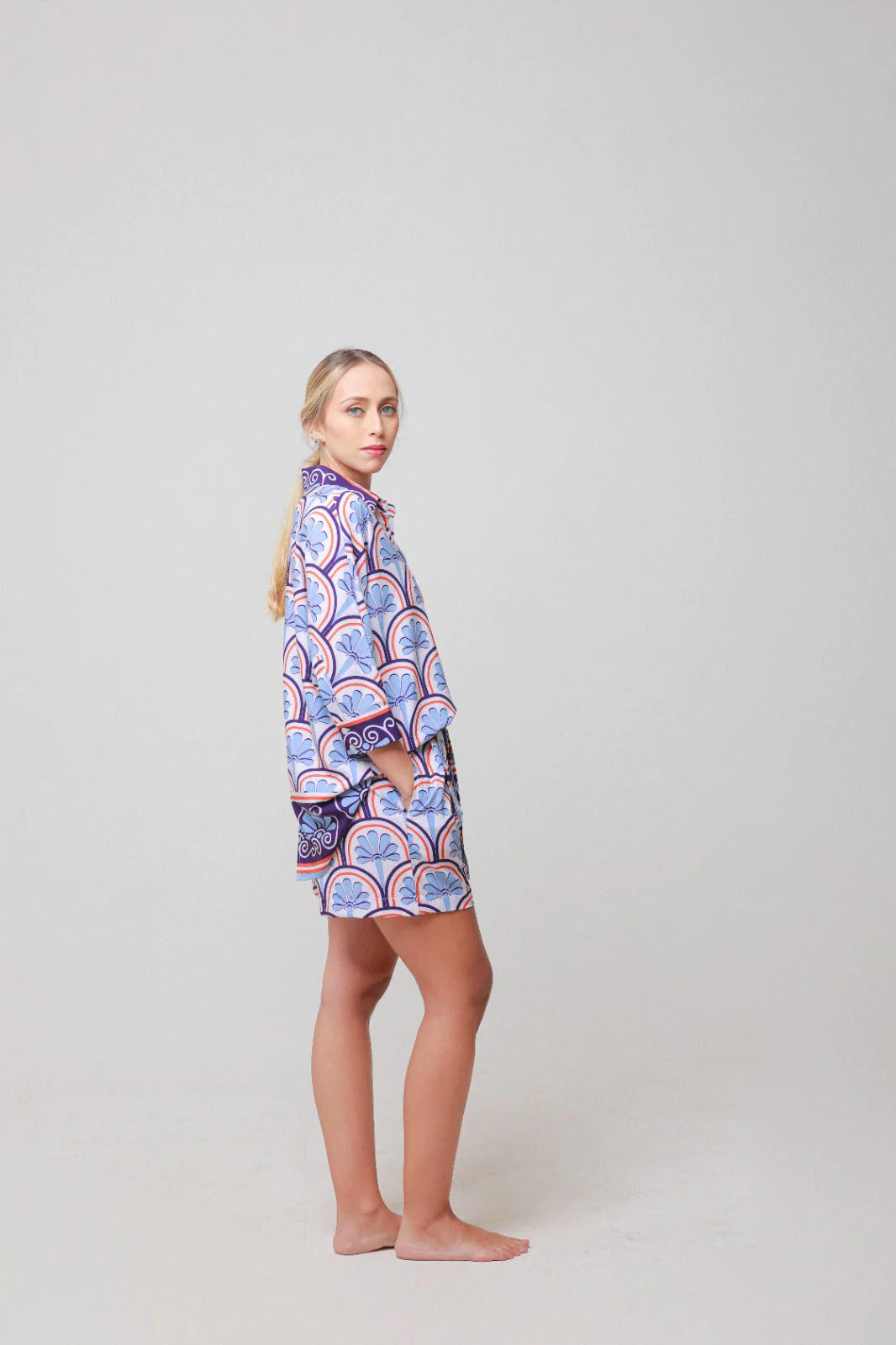Introducing Curazao, the perfect set for your summer wardrobe. Crafted from soft and breathable cotton with a gorgeous Mediterranean print, this set includes a stylish blouse and comfortable shorts. Embrace a luxurious and exclusive style with Curazao.