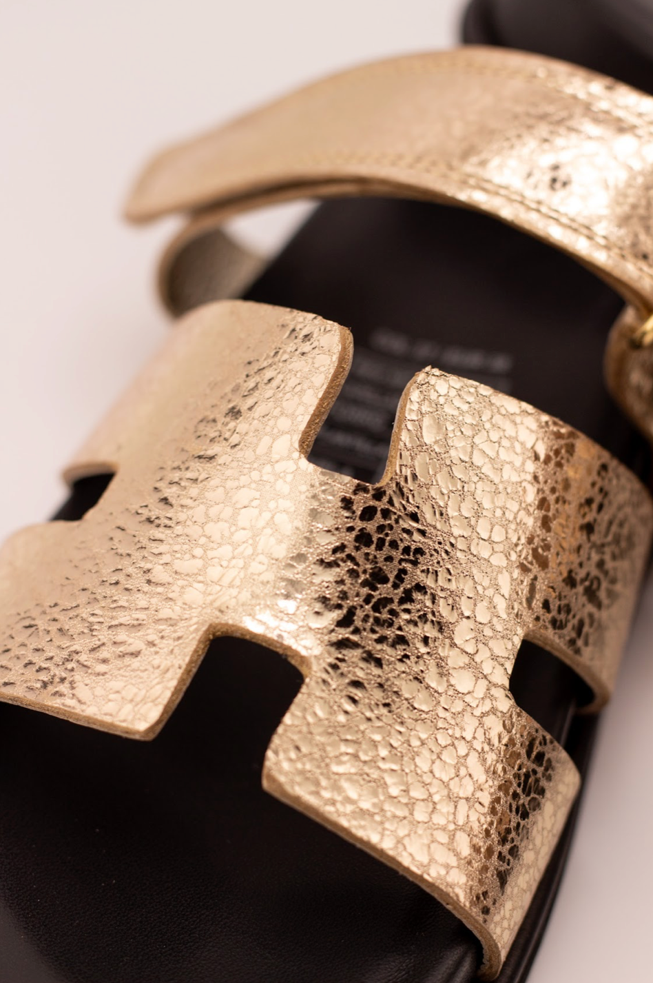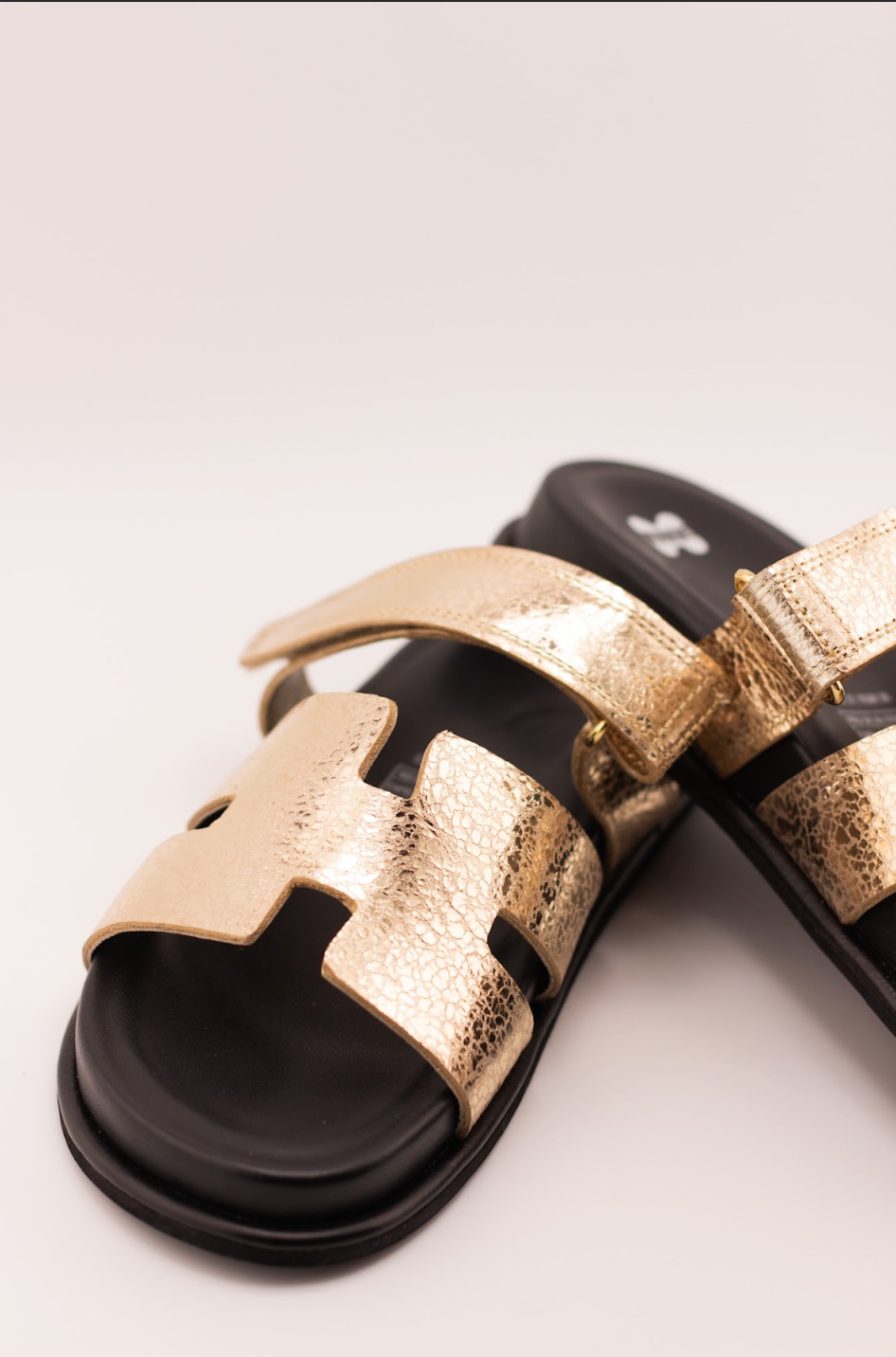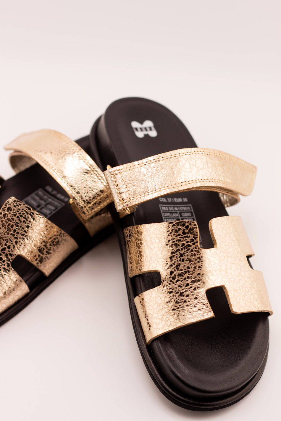 Indulge in luxury with our EMI sandals. Crafted in shimmering gold, these trendy sandals feature a cute textured design and cushioned sole for unrivaled comfort. Elevate your style and treat your feet with EMI.