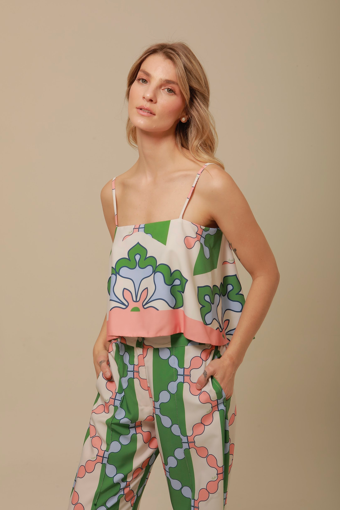 Introducing the LALA TOP made with luxurious ECOPOLYESTER. This premium fabric is not only elegant and exclusive but also environmentally friendly. Experience the comfort and style of our LALA TOP, perfect for the modern and conscious fashionista.